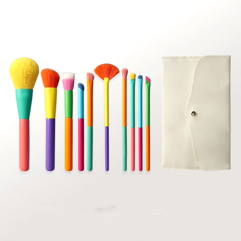 Juego de brochas de maquillaje de colores, pinceles sintéticos para maquillaje Kabuki facial, base, colorete, contorno, corrector, sombra de ojos, 10 unidades