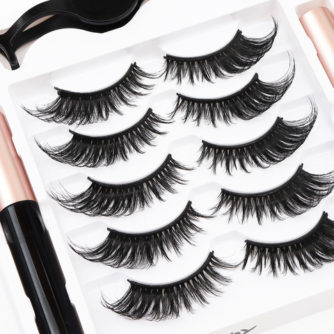 Venta al por mayor de pestañas postizas magnéticas 5D reutilizables con kit delineador magnético en caja